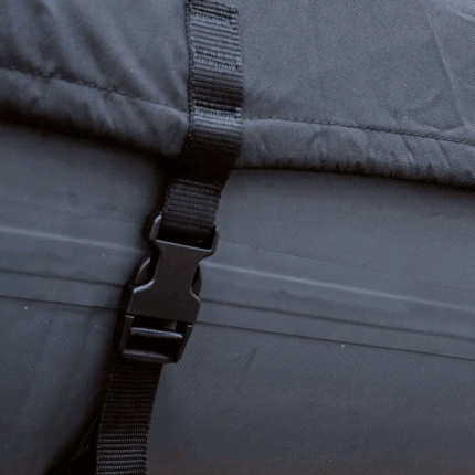 Από ανθεκτικό πολυέστερ (600Denier) με ελαστικό σχοινί περιμετρικά, κρικάκια D και 3 ρυθμιζόμενους ιμάντες με πόρπη.