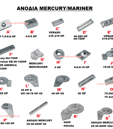 Ανόδια για εξωλέμβιες Mercury/Mariner, Mercruiser & Verado. Δίχρονους/Τετράχρονους απο 2,5 εώς 300ΗΡ. Βρείτε στην φωτό το ανόδιο της μηχανής σας και επιλέξτε τον τύπο. Αν δεν βρίσκετε το ανόδιο σας τότε γράψτε μας στις παρατηρήσεις πιο ψάχνετε καθώς και το μοντέλο του κινητήρα σας (χρονολογία), τους ίππους και αν είναι δίχρονο ή τετράχρονο.