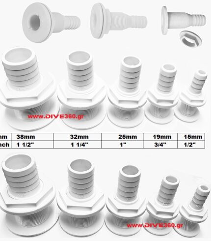 Πλαστική υδρορροή/εξαγωγή από ενισχυμένο πλαστικό με UV. Ανθεκτικό στις συνθήκες της θάλασσας και στην ηλιακή ακτινοβολία. Μπορεί να συνδεθεί με σωλήνα, σεντίνα κ.α.