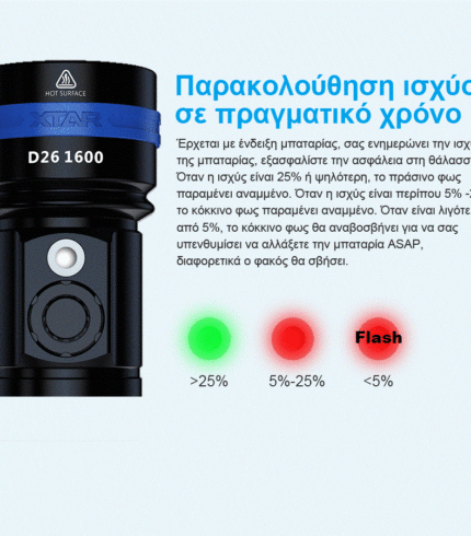 - 1 x Φακός XTAR D26 1100lm Diving Flashlight, Cool White