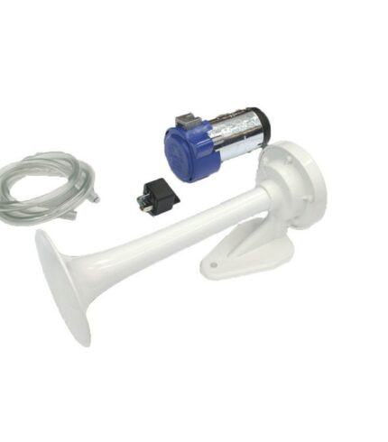 Ηλεκτρική κόρνα 12V Τύπου μπουρού κατασκευασμένη από αντιδιαβρωτικά υλικά, κατάλληλη για μικρά σκάφη. Είναι ανθεκτική στις υπεριώδεις ακτίνες και το θαλασσινό νερό.