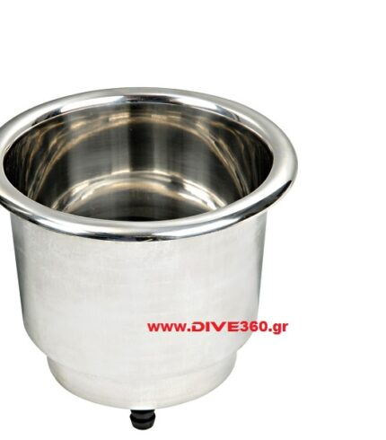 Ποτηροθήκη με αποστράγγιση απο γυαλισμένο inox, χωνεύεται στο ταμπλό ή την κονσόλα οδήγησης.