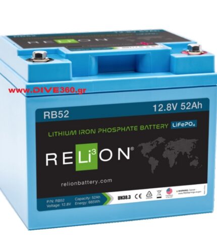 - Η RB52 είναι μια μπαταρία φωσφορικού σιδήρου λιθίου (LiFePO4) με περισσότερη ισχύ, λιγότερο βάρος και έως και 10 φορές μεγαλύτερη διάρκεια ζωής από τις αντίστοιχες μολυβδούχου οξέος. Το λίθιο είναι η λογική επιλογή για θαλάσσιες εφαρμογές όπου χρειάζεστε μεγαλύτερο χρόνο λειτουργίας και αξιοπιστία. Οι μπαταρίες λιθίου RELiON παρέχουν περισσότερη ενέργεια για υψηλή κατανάλωση από τις παραδοσιακές μπαταρίες μολύβδου-οξέος. Επιπλέον οι μπαταρίες μολύβδου-οξέος πρέπει επίσης να συντηρούνται και αν δεν συντηρούνται σωστά, η διάρκεια ζωής τους μειώνεται.
