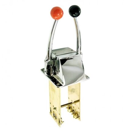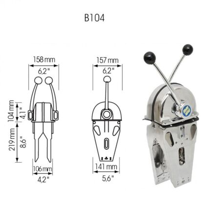 - Διπλό (Β104) - Κατάλληλο για δύο μηχανές, η κάθε λαβή διαθέτει διπλή λειτουργία για γκάζι και ρεβέρσα. Δεξιά ή αριστερά τοποθέτηση. Κατάλληλο για όλους τους τύπους μηχανών θαλάσσης. Διαθέτει ασφάλεια στην θέση "N" (neutral). Συνδέεται με ντίζα C8, C2. Περιέχει kit σύνδεσης.