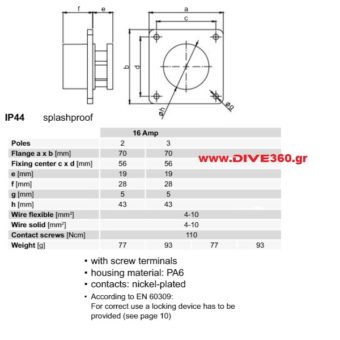 Osculati – Στεγανή Θηλυκή Διπολική Πρίζα 16Α/24V