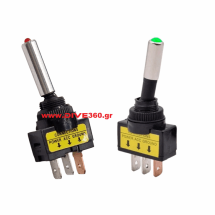 Dive360 – Διακόπτης ΟΝ/OFF 12V-16A με Φωτιζόμενη Ένδειξη LED (σε 2 χρώματα)