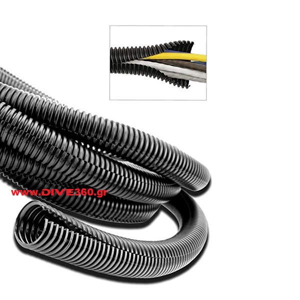 Σχιστός σωλήνας προστασίας των καλωδίων της εξωλέμβιας μηχανής σας σε μαύρο χρώμα.