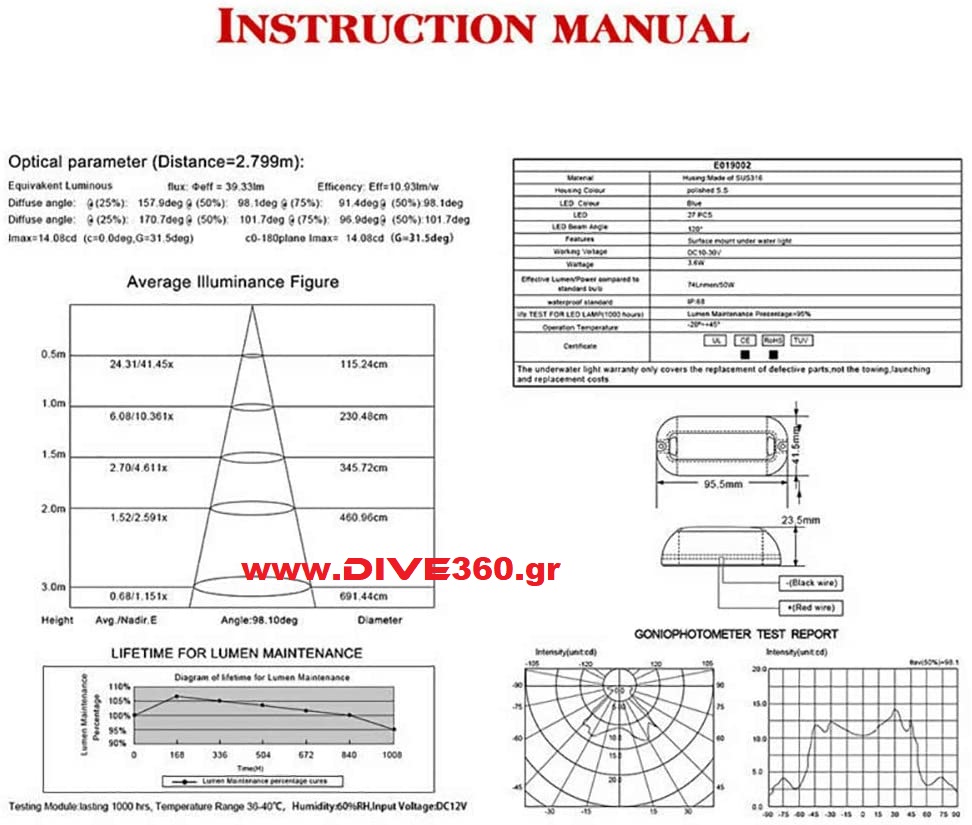 - Ισχύς: 3.6WΣτεγανοποίηση IP68