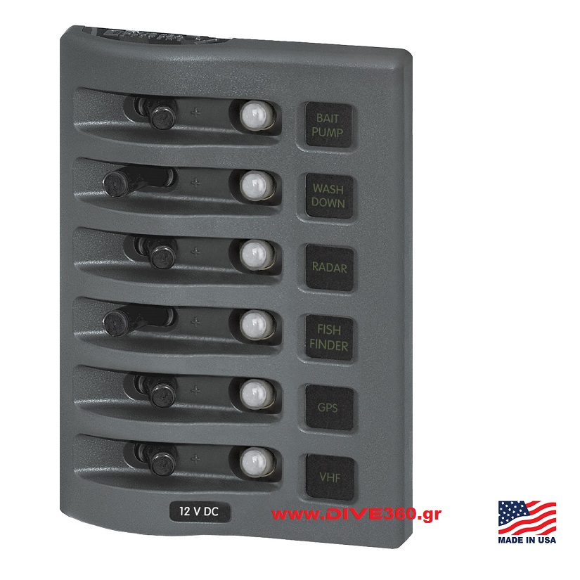 WeatherDeck® 12V DC Waterproof Circuit Breaker Panel – Gray 6 Positions