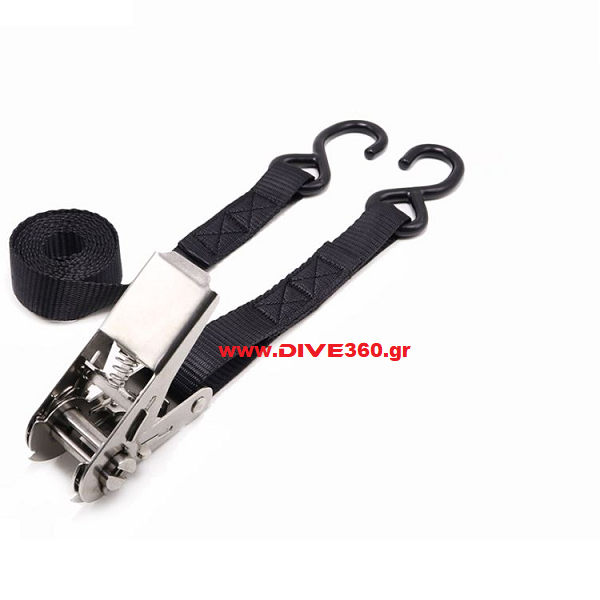 Ιμάντας πρόσδεσης polyester 2.5 Χ 450cm με inox καστάνια και γάντζους καλυμμένους με βινύλιο για δέσιμο σκαφών, μπαγκαζιέρων, φορτίων φορτηγών, μηχανών ανάλογα με την εκάστοτε περίπτωση