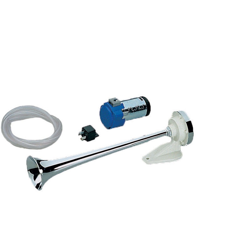 Ηλεκτρική κόρνα 12V Τύπου μπουρού κατασκευασμένη από αντιδιαβρωτικά υλικά, κατάλληλη για μικρά σκάφη. Είναι ανθεκτική στις υπεριώδεις ακτίνες και το θαλασσινό νερό.