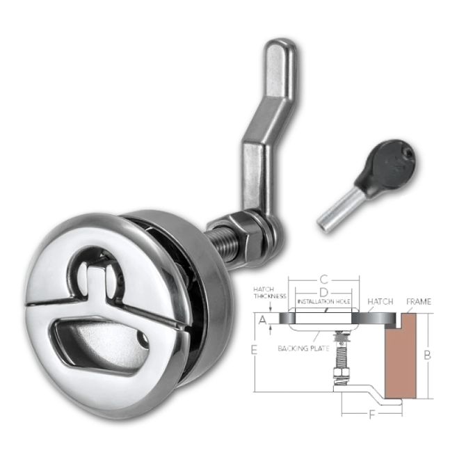 H κλειδαριά είναι κατασκευασμένη από ανοξείδωτο ατσάλι SS 316 – Ο αντικραδασμικός του σχεδιασμός ενσωματώνει ελατήριο το οποίο εξασφαλίζει αθόρυβη λειτουργία, ενώ το μεγαλύτερο άνοιγμα της λαβής προσφέρει ένα πιο άνετο κράτημα. Ο άξονας 3/8″ είναι βαρέως τύπου, ενώ όλα τα υπόλοιπα εξαρτήματα είναι από ανοξείδωτο ατσάλι SS 304 και περιλαμβάνονται στο σετ. Με κλειδί