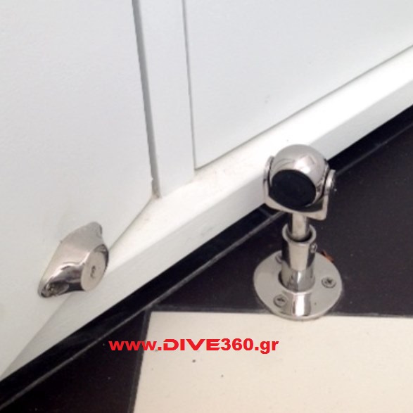Marine grade stainless steel adjustable length door holder with magnetic catch.