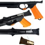 It consists of the top international most advanced ergonomic LEADER handle with a particularly low profile with a non-slip, anatomic grip, arming heel, reduced friction spear guide, water balance compartment, ambidextrous monofilament guide (line release), multi-purpose bore, etc.