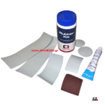 Includes: 2 circular patches, 1 rubber glove, 1 tube of glue, 4 rectangular patches, watertight package with user instructions