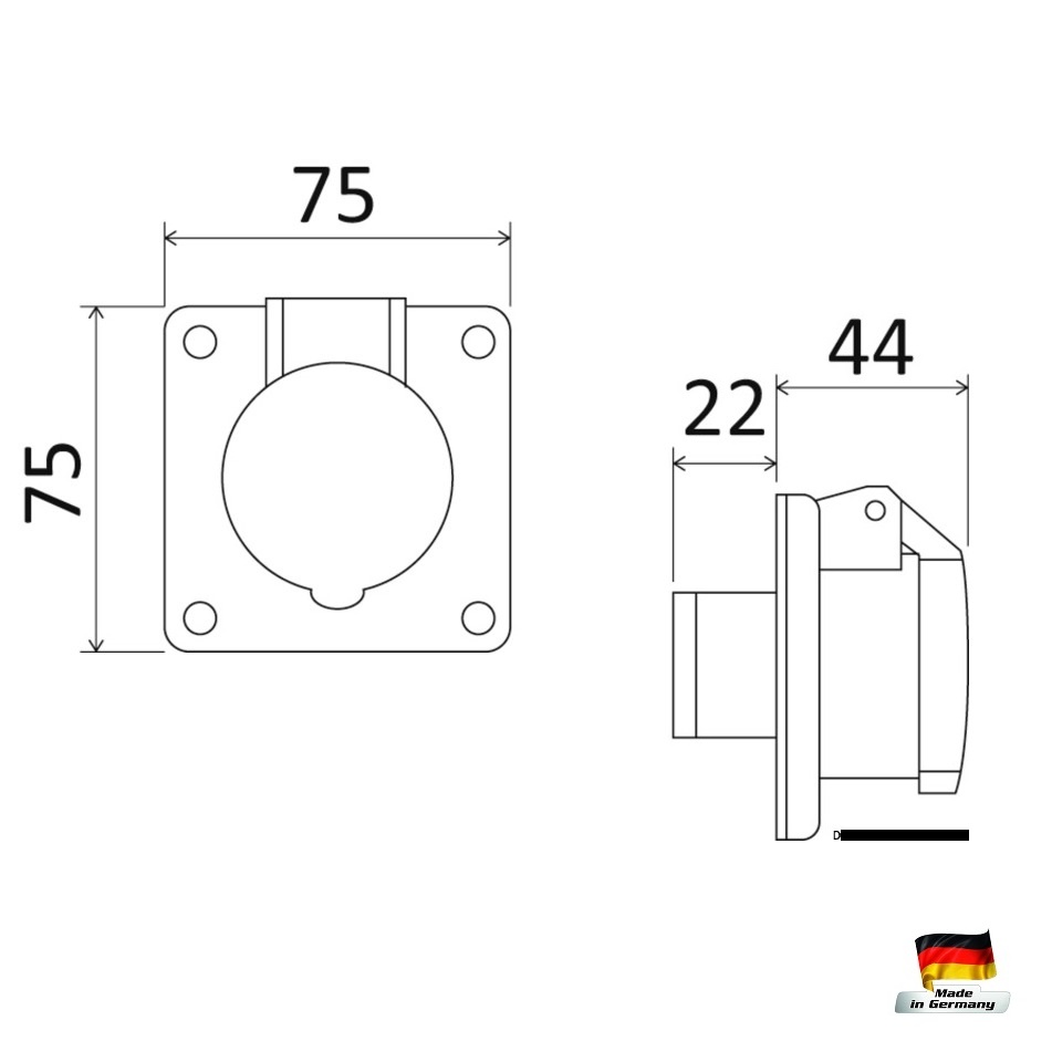 | Poles | 2 | Max A | 16 | Type | Socket to be mounted flush with the wall |