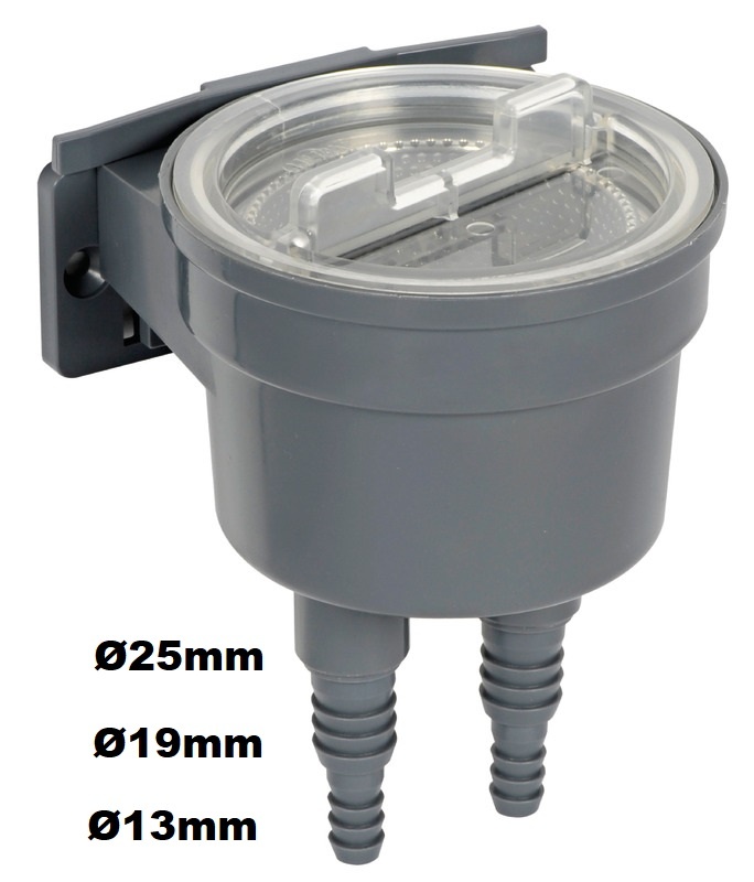 Φίλτρο νερού πλαστικό για το φιλτράρισμα υδάτων που προορίζονται για τεχνικές εργασίες, όπως η ψύξη των κινητήρων ή το air condition πλευρικής στήριξης, με εσωτερική ανοξείδωτη σίτα και διάφανο καπάκι ελέγχου.