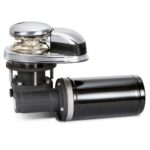 Windlass with base in Aisi 316 stainless steel, without casing, tensioner device, provision for chain counter sensor (not included), manual chain free fall system, inspection hatch, watertight motor, anodized aluminum reducer.