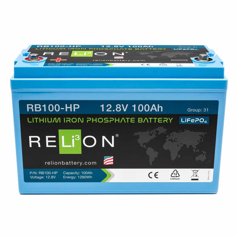 RELiON’s RB100-HP is a Group 31 12V, 100Ah deep-cycle lithium-ion battery built for starting and cycling. The RB100-HP has increased peak amps for starting motors, electric start generators, and other high-amp-draw devices – plus, it doubles as a house battery, powering peripherals, accessories, and more.