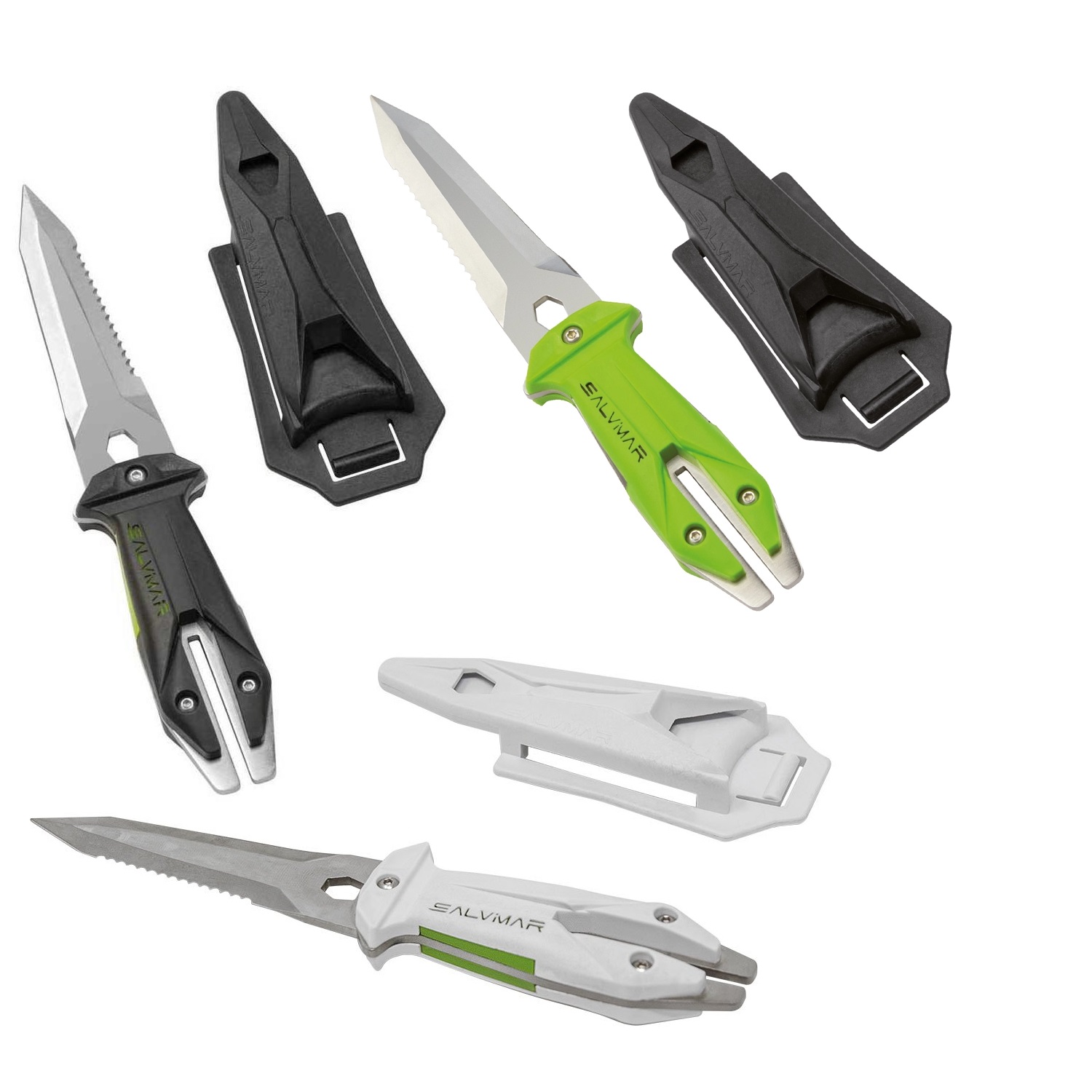 Ανθεκτικό μαχαίρι υψηλής κόψης κατάλληλο για υποβρύχιο ψάρεμα. Διαθέτει εργονομική λαβή απο αντιολισθητικό πλαστικό, για να μην γλιστράει από το χέρι του δύτη και είναι εξοπλισμένο με 2 διαφορετικές πλευρές οι οποίες η μια φέρει οδοντωτή λάμα και ή άλλη ίσια. Στο πίσω μέρος διαθέτει εξωλκέα βέργας και στην λάμα έχει οπή που χρησιμεύει για ίσιωμα βεργών.