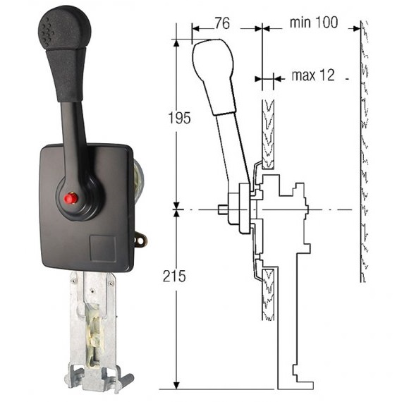 Πλαϊνό χειριστήριο μονό, χωνευτό ΤFX 700SS. Βαρέως τύπου διπλής λειτουργίας (γκάζι-ταχύτητες σε έναν λεβιέ). Κουμπί προθέρμανσης κινητήρα και ασφάλεια μη εναύσεως κινητήρα όταν έχει κουμπωμένη ταχύτητα.