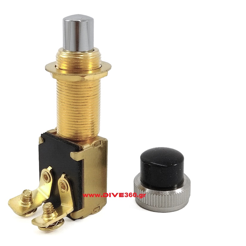 - Διακόπτης κόρνας ορειχάλκινος (μπουτόν) διατομής Ø 16mm με ελαστικό μαύρο κάλυμμα. Ολικό μήκος 73mm.