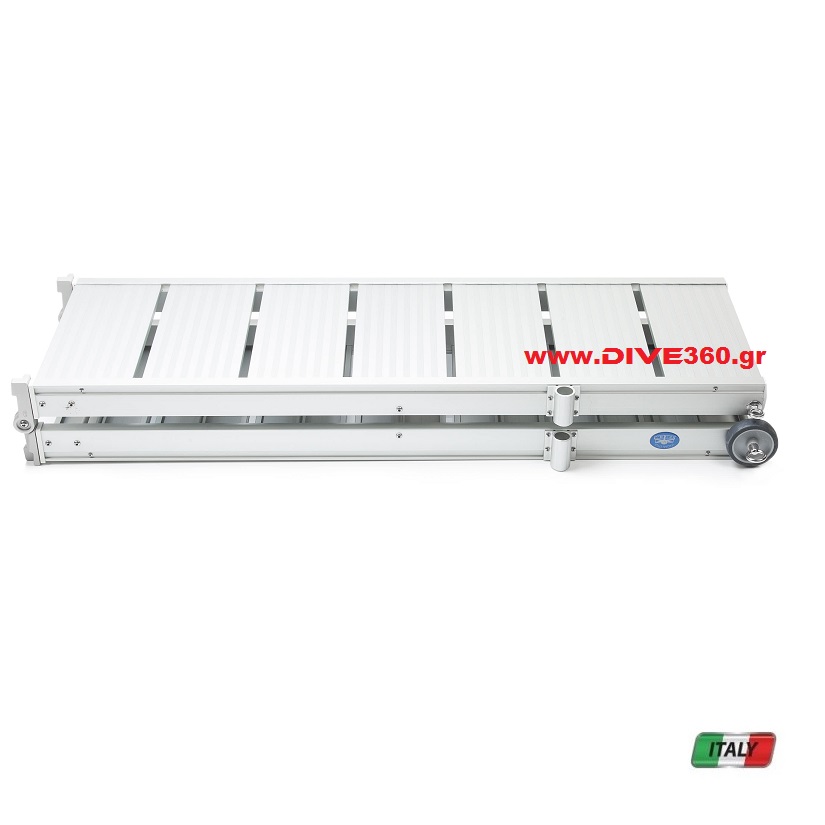 Πασαρέλα αλουμινίου κομψή, αλλά και εξαιρετικά καινοτόμα και πρακτική. Ο διάδρομος/πασαρέλα της Trem είναι κατασκευασμένος από ανοδιωμένο αλουμίνιο και είναι πτυσσόμενος στη μέση. Όλα τα εξαρτήματα συναρμολογούνται και λύνονται εύκολα.