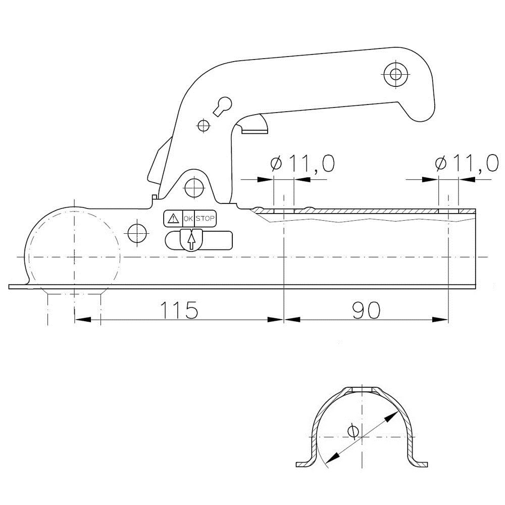- Horizontal and vertical opening with a diameter of 11 mm. Spacing between the openings: 90 mm.